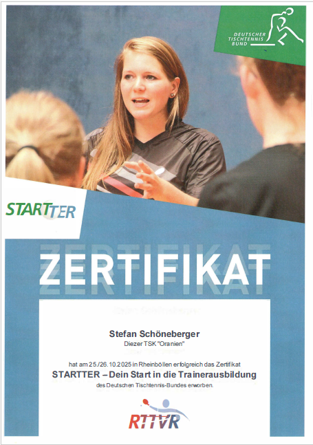 Parallel zu den Damen machte unser Senior Stefan in Rheinböllen den ersten Trainerschein zum StarTTer. An zwei langen Lehrgangstagen erlernte Stefan die Grundlagen des Trainerseins.