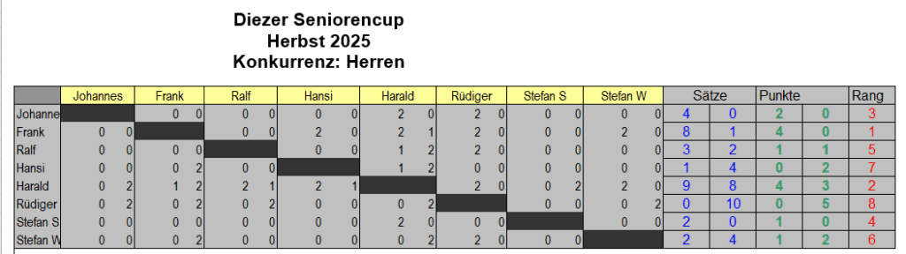 Oldie-Cup Herbst 2025: aktuelle Tabelle